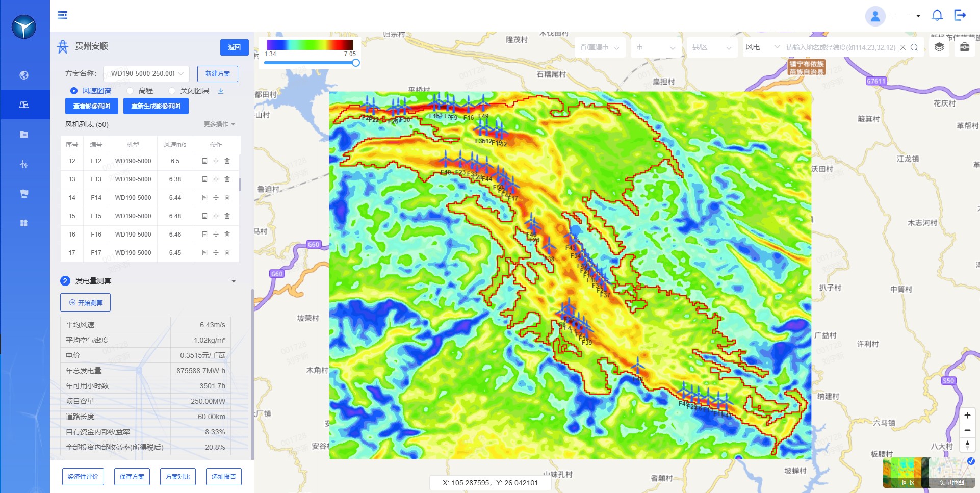 風(fēng)電場宏觀選址是指對一個區(qū)域內(nèi)的資源進(jìn)行普查,根據(jù)該區(qū)域內(nèi)的地形、地貌、氣象、土地利用規(guī)劃、經(jīng)濟性效益等方面進(jìn)行綜合評價,選出適合開發(fā)的場址。如何快速準(zhǔn)確地定位優(yōu)質(zhì)開發(fā)區(qū)域,如何篩選出合適開發(fā)的范圍場址,如何得到詳盡完備的規(guī)劃設(shè)計方案,如何提前評估項目全生命周期經(jīng)濟性收益?對于以上問題,威尼斯9499登錄入口股份基于多年的風(fēng)電開發(fā)經(jīng)驗和領(lǐng)先的數(shù)字化能力,打造了擁有自主知識產(chǎn)權(quán)、針對風(fēng)電場宏觀選址的規(guī)劃平臺軟件——“馭風(fēng) Wind Compass”。