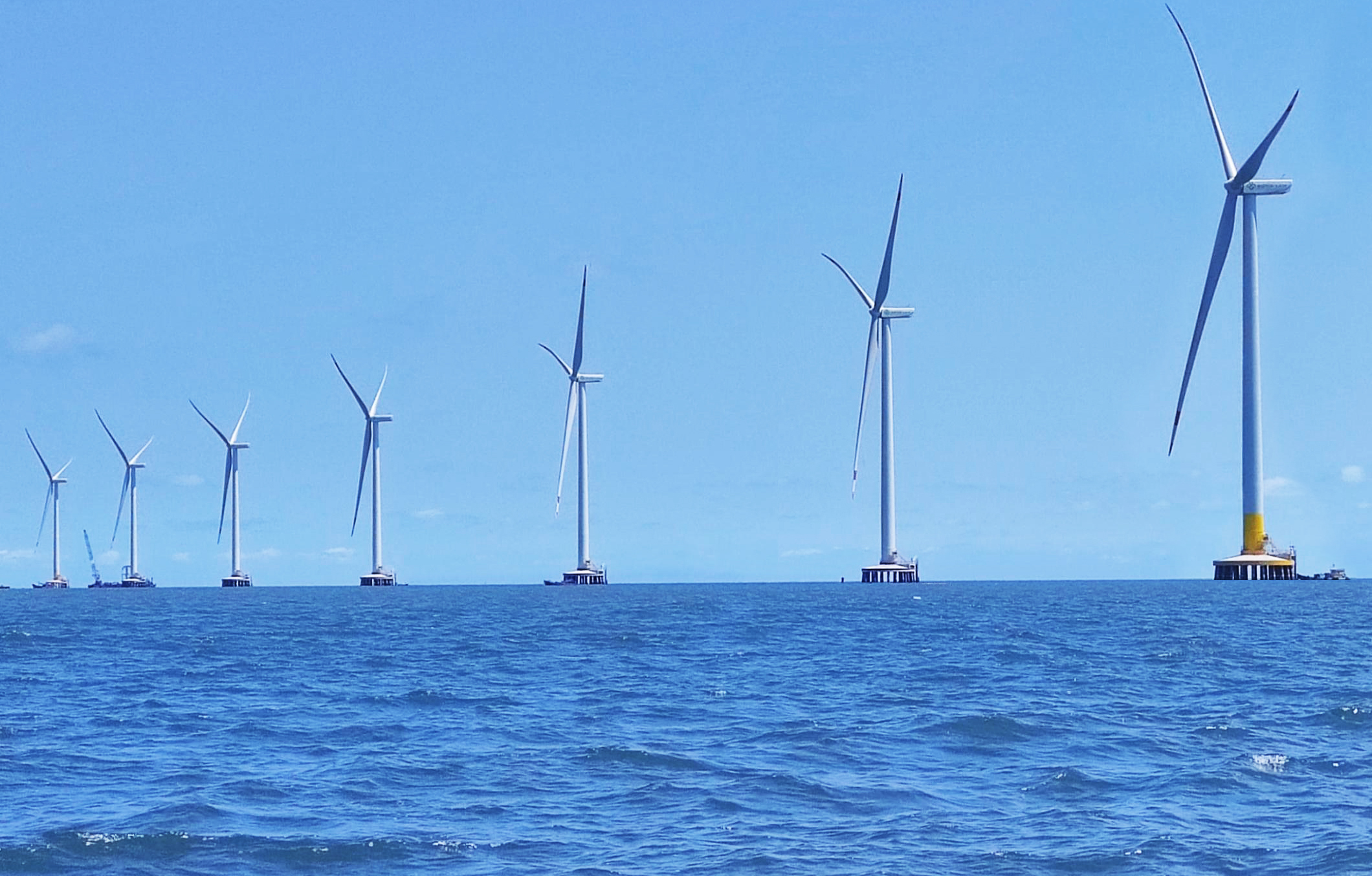 項目吊裝期間,越南海域進入大風季,陣風最大可達17米/秒,浪高達到2米,本來施工窗口期就短,再加上海上風電機組塔內設備較陸上機組多,首段塔筒需在陸地上完成預組裝,直立運輸?shù)綑C位,在超高、超重情況下,運輸?shù)跹b難度可謂直線上升。
