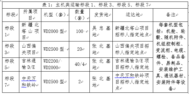 (1)主機(jī)類(含機(jī)艙、輪轂及相關(guān)附件等)運(yùn)輸:分標(biāo)段1、標(biāo)段3、標(biāo)段5、標(biāo)段7共4個(gè)項(xiàng)目4個(gè)標(biāo)段;